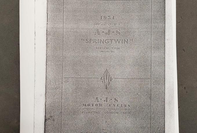 AJS 500cc O.H.V. Springtwin 1954 Teilebuch Kopie
